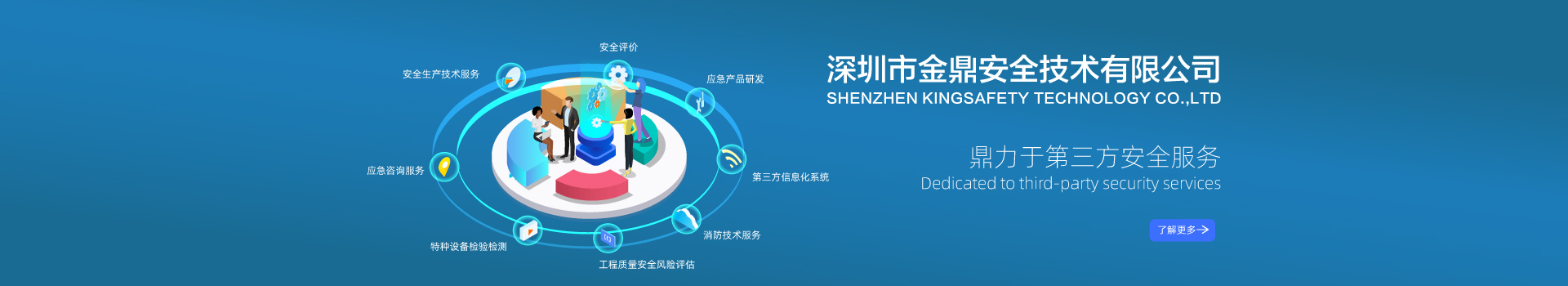 深圳市金鼎安全技術有限公司創立于2001年,深耕安全應急咨詢服務領域二十余載,是一家集安全評價、標準化建設指導、消防評估檢測、特種設備檢測、工程質量安全評估、宣傳教育培訓、安全應急和數字化運維于一體的第三方服務機構。